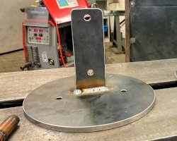 Rainer Milbrandt bei der Nachbearbeitung eines gelaserten Bundesadlers aus 8 mm Stahlblech.