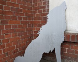 Silhouette eines Wolfes, aus 1,5 mm Stahl gelasert.